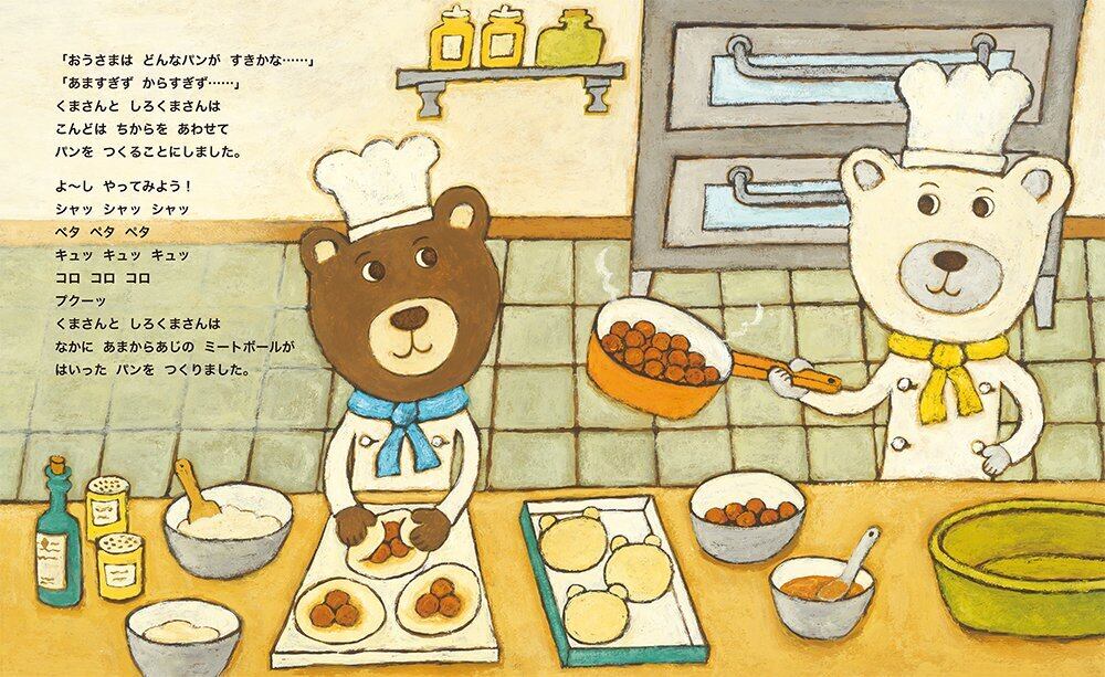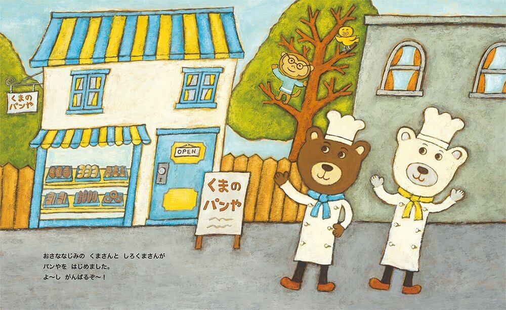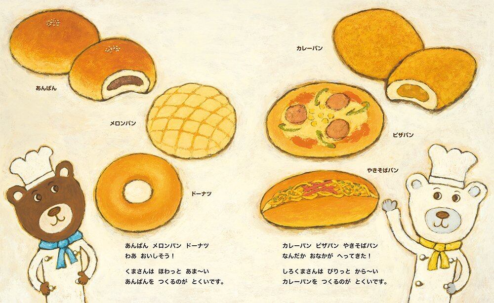 くまさんはあんパン、しろくまさんはカレーパンを作るのが得意です。美味しいパンにお店は大人気。
