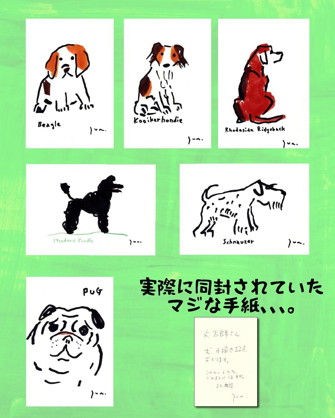 と、手書きのメッセージ(画像4枚目参照)と22枚の犬の絵を見ました。