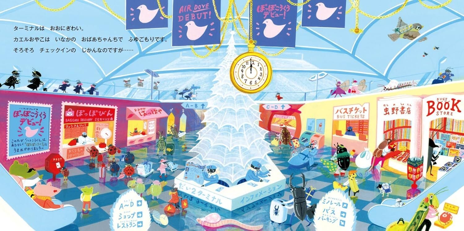 オーバーブッキングや悪天候による「欠航」で飛行機に乗れるか?否か?ハラハラしたことはありますか?今作では実際に乗るはずだった飛行機のハトがナント!寝てしまい欠航となってしまい、カエルの親子は困ってしまいます。